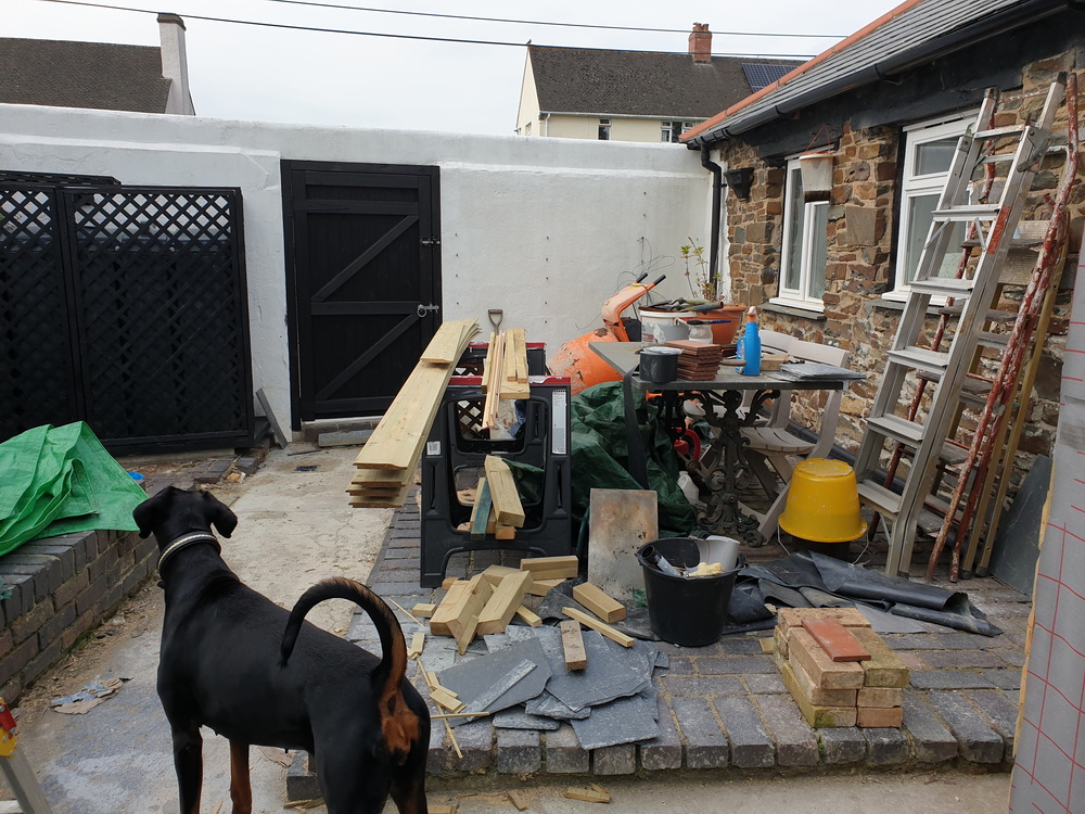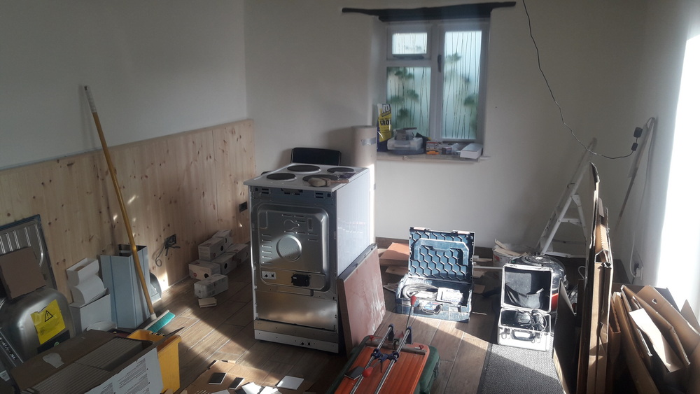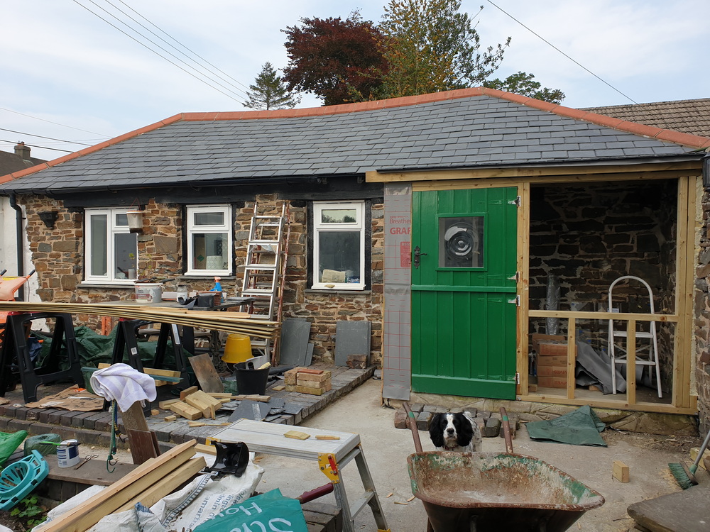 Some of the first things we did were to move two tonnes of pebbles, relocate the oil tank to a safer position and redesign the interior layout to include adding a porch for coats and boots. Then the rebuild of the interior started: